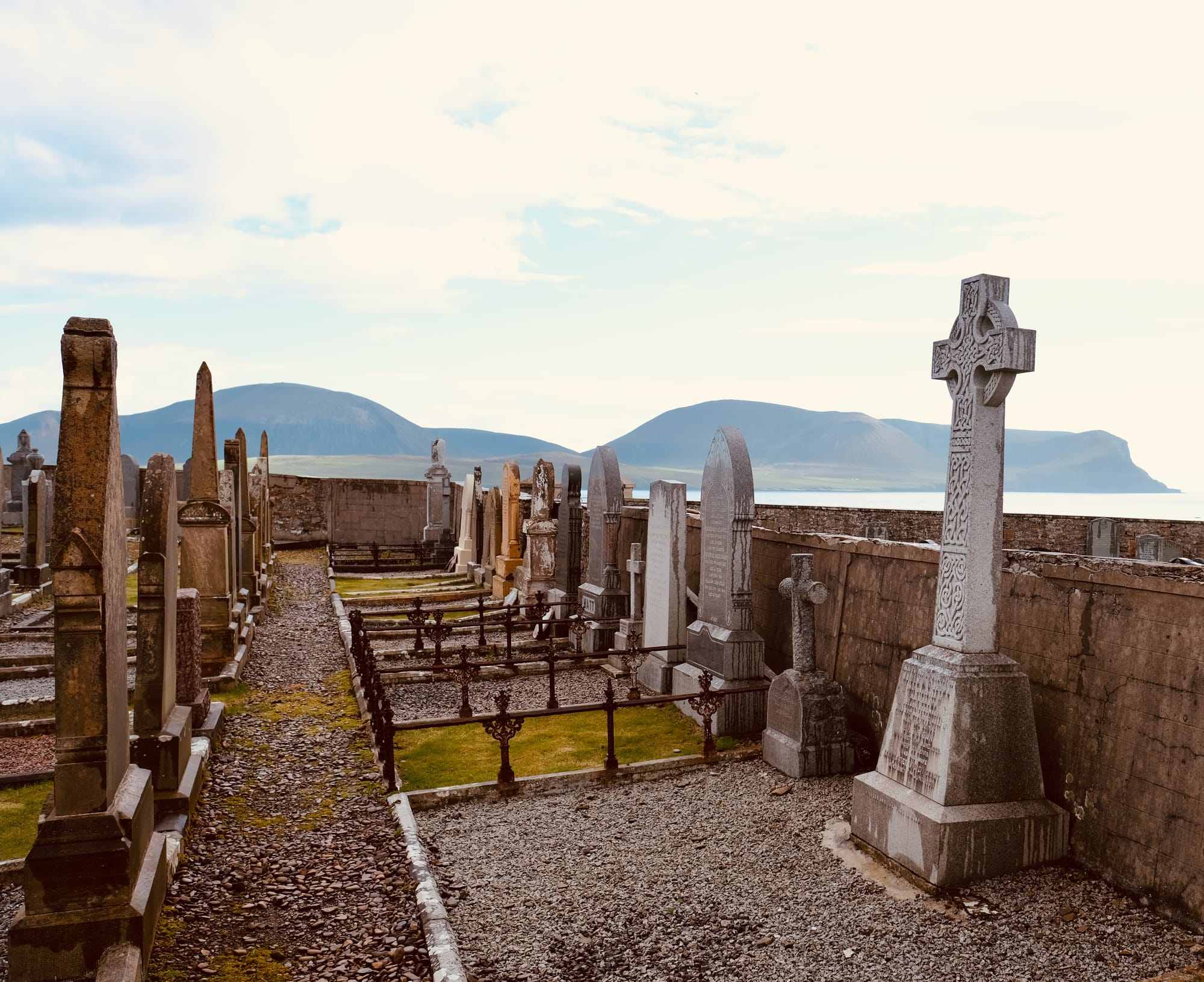 Elsewhere in these northern islands and archipelagos the cemeteries are more familiar jumbles of headstones and Celtic crosses and memorials with inscriptions. Walled, dignified, but a bit messy, more basement or attic lumber room of the spirit (depending on your theology) than focussed, logical, monomaniacal pursuit of an idea of death.